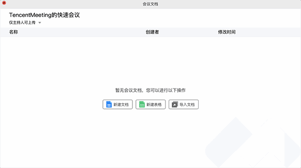 点击该按钮,即可唤出文档窗口,您可以在该窗口创建文档,并且决定是否邀请会中成员协作。同时您也可以选择导入本地的文档,然后在会议中和其他成员共同协作,您在会后可以在Web个人中心中查看您的文档记录