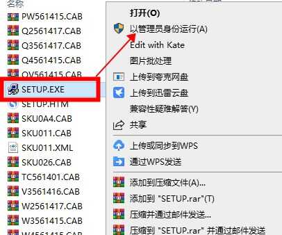 3、鼠标右击【SETUP】选择【以管理员身份运行】。