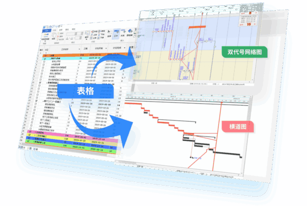 全新“一表多图"编制方式,会用Excel就会用斑马进度计划!可以在表格中做计划,双代号网络图和横道图同步生成,也可以直接绘制双代号网络图,一种输入多种输出,一表多图实时联动计算,不改变计划编制人员的习惯,随心所欲!
