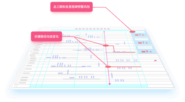 拉直前锋线,后续工作关联影响以及关键线路变化自动计算总工期和关键里程碑工期实时预警,辅助项目掌控风险