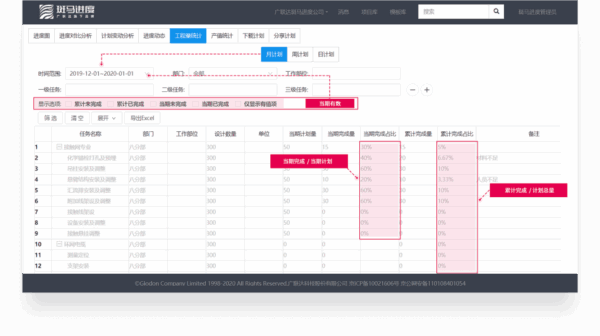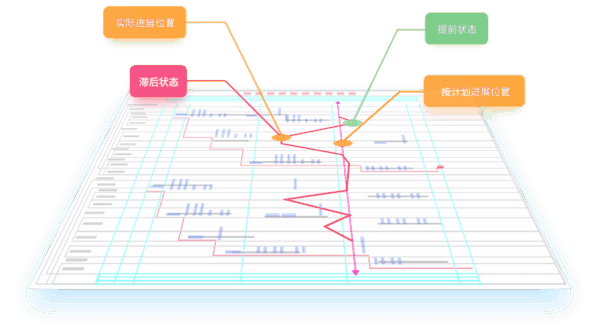 总计划从粗到细逐级细化,可按需自动截取生成期间计划(月、周计划),并完成任务派发。任务实际情况反馈到期间计划,形成前锋线向上层层反馈,支持多级里程碑管理,真正打通多级计划管理,防止总、月、周计划脱节问题,计划和生产脱节问题发生,工期自动预警,实时掌控风险。