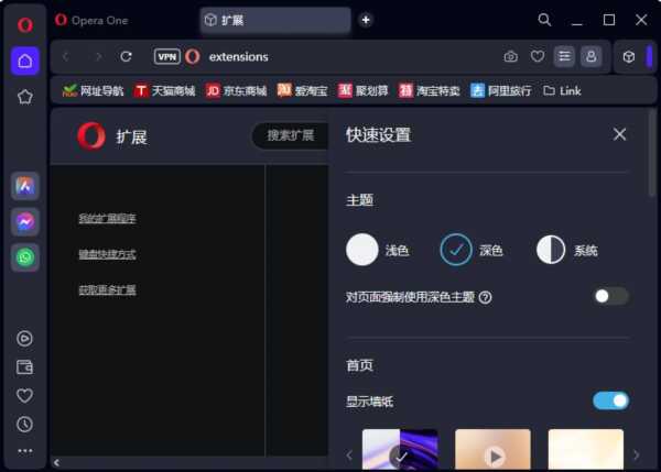 当然了你也可以点击左边的【获取更多扩展】前往欧朋的扩展中心来获取各类插件。