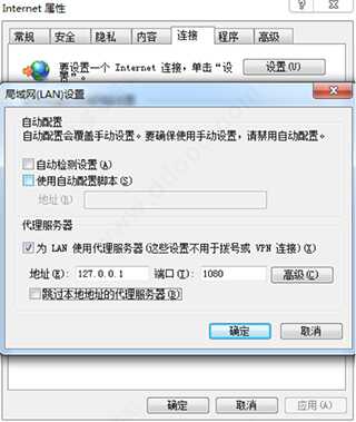 4、然后在勾选“为LAN使用代理服务器”,填入代理服务器的IP地址和端口,最后点击确定完成。