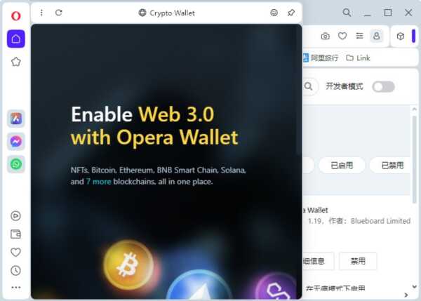 【加密钱包】Opera 是第一个支持 Web 3的浏览器,浏览器内置的加密钱包可以让你直接从浏览器存储和使用加密货币,完成区块链安全交易,以及浏览和使用 Web 3应用程序(dApp)。