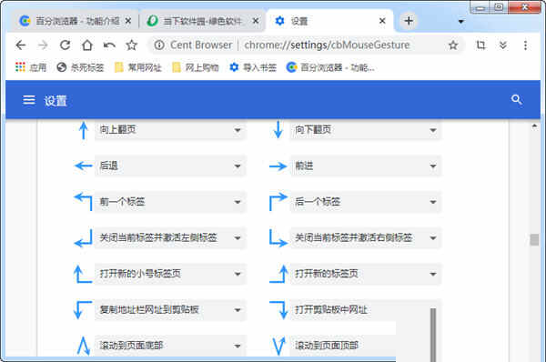 鼠标手势 – 百分浏览器无需使用键盘、菜单或者工具栏,按住并移动鼠标右键按钮执行命令;