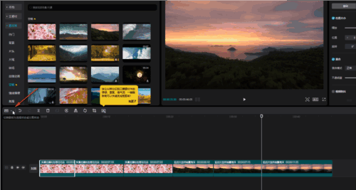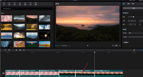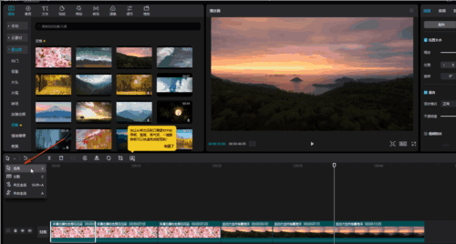 一、在抖音剪映电脑版里导入素材后,点击在时间轴左上方【下拉箭头】
