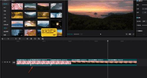 三、设置完后在时间轴中点击素材发现成功【选中】而不是【切割】了