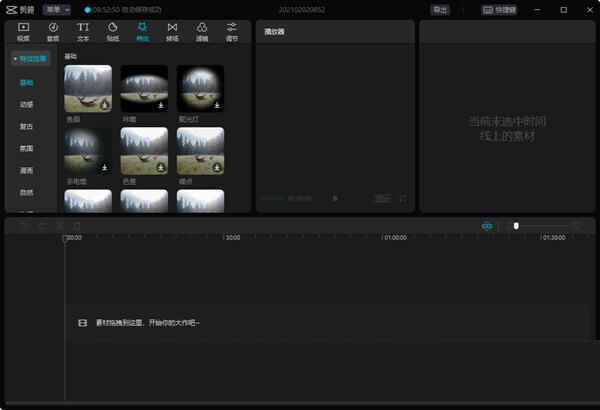 在编辑界面点击滤镜,在滤镜里点击效果即可预览。