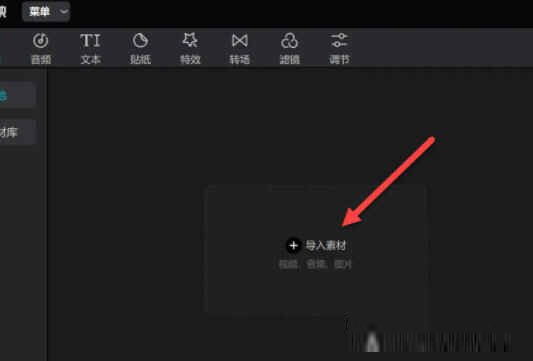打开剪映,点击素材下方的加号,将素材添加至时间轴。