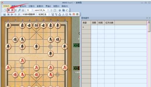 4.比如到了上述局面,这个时候,你是黑方,轮到黑方走棋,你却不知道怎么应对怎么办,于是你打开图上的黑色按钮,则会给出电脑的思考对策。于是电脑走了下面这个步奏。