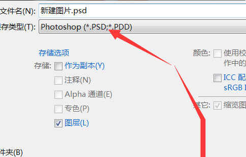 2、即可弹出存储对话框,如果需要继续编辑该文件,则选择“PSD格式”,点击保存。