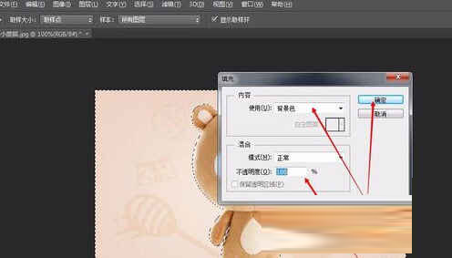 7、按Delete键,在弹出的窗口选择填充颜色、透明度后点击“确定”;