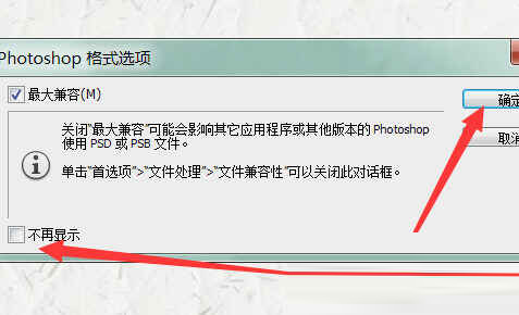 4、在保存时弹出的“格式选项”对话框,可以直接点击“确定”按钮,如不需显示,可以勾选“不再显示”。