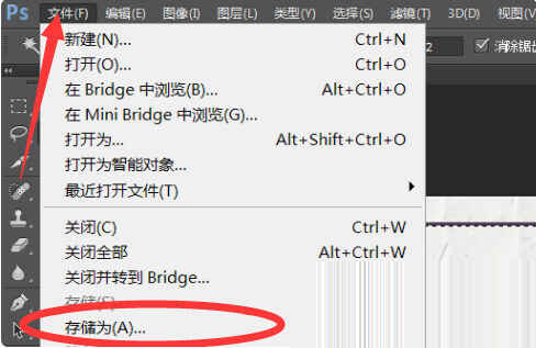 1、首先在打开的photoshop cs6程序中点击左上角的“文件”按钮,并在打开的下拉菜单中选择“存储为”。