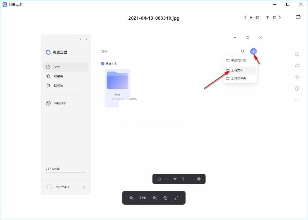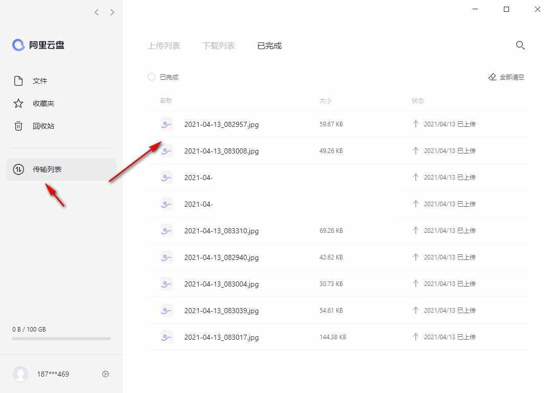 10、提示100GB容量,您可以在云盘保存很多数据,可以将大型的数据传输到软件
