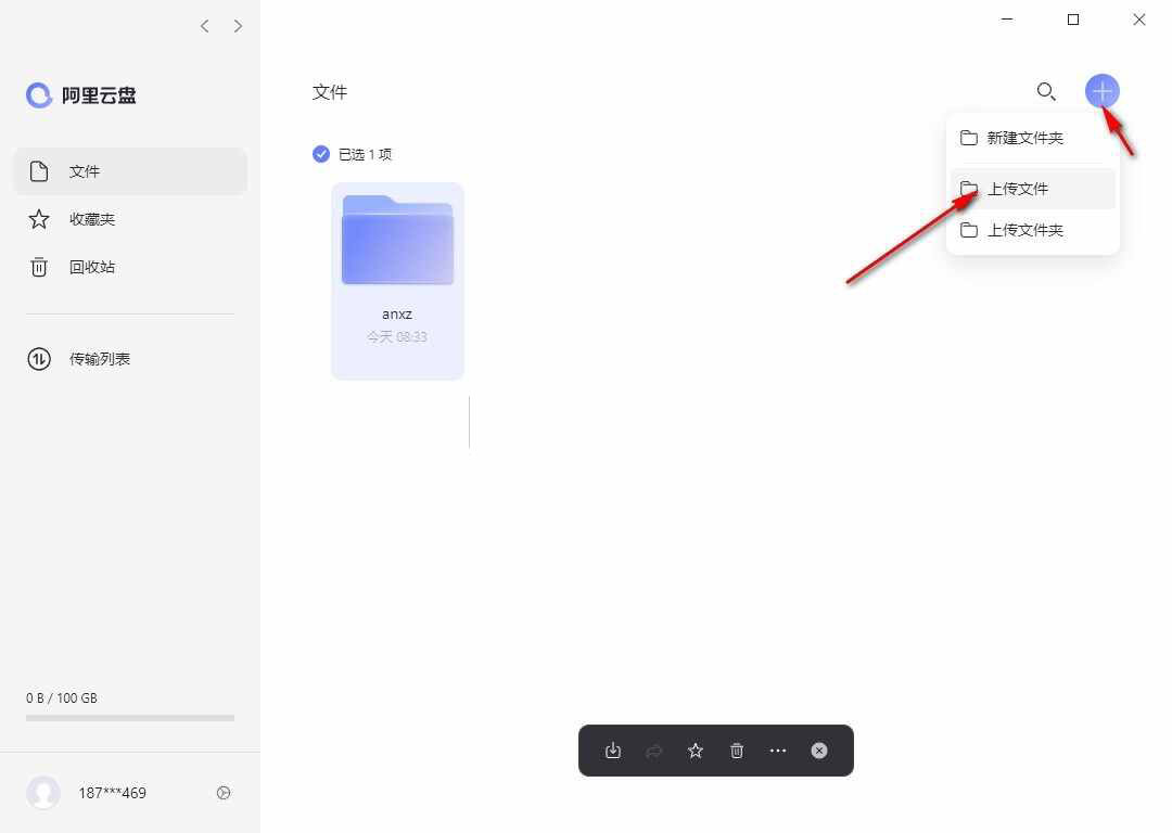 4、您也可以点击+按钮选择新的上传功能,也可以建立新的文件夹