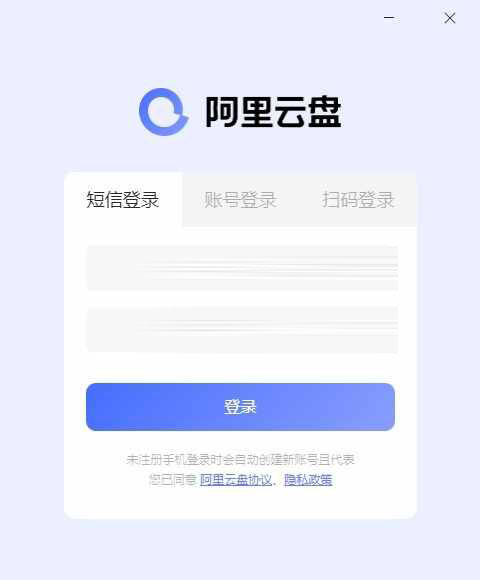 1、打开阿里云网盘就可以进入登录界面,输入自己的手机号