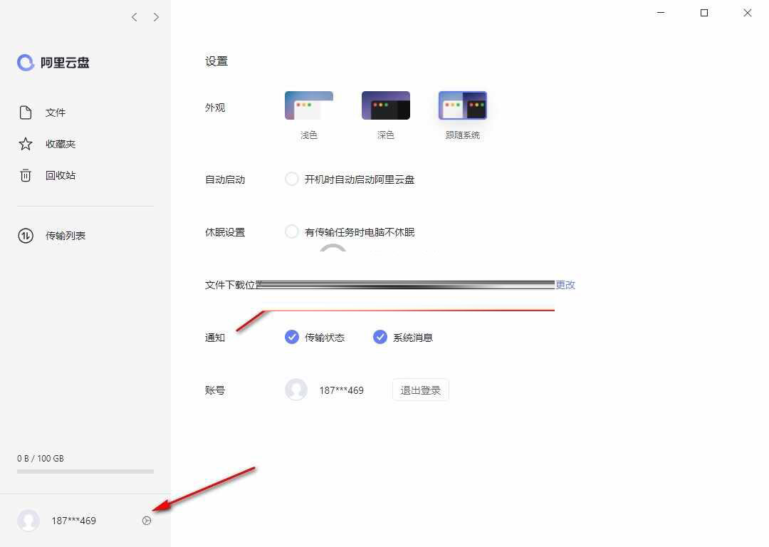11、提示设置功能,可以设置下载地址,可以调整云盘的主题颜色