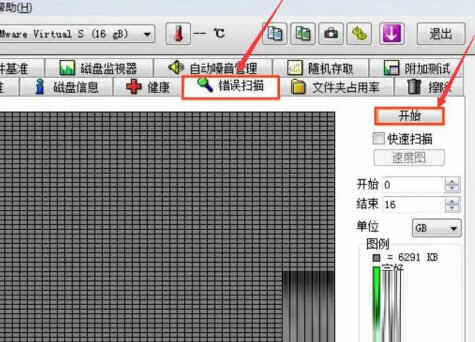 1、首先,我们打开 hd tune pro 程序。在修复坏道前,我们先检查坏道的情况。切换至“错误扫描”选项卡,点击“开始”按钮。