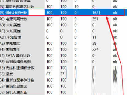 3、马达重启/停止计数:“数据”值表示硬盘的重启次数。