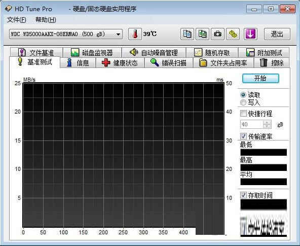 (1)基准:“基准”项是测试硬盘的传输速率,硬盘的平均传输速率大概都有100+以上,反映硬盘读写速读。