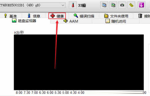 3、单击屏幕上方健康状态选项,屏幕上会出现一些数据,这些数据就是磁盘健康状态的相关数据