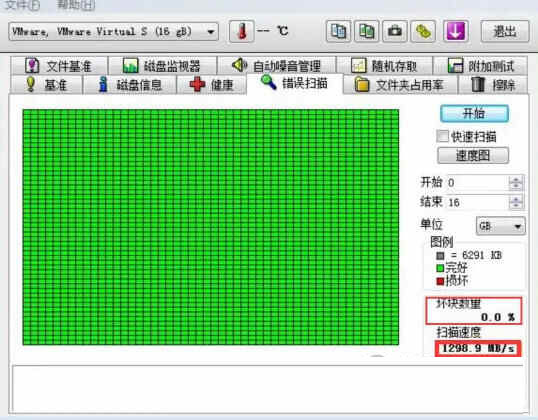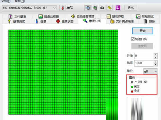 (5)错误扫描错误扫描:扫描硬盘有没有坏道,绿点为正常,红点就是坏道了,要及时修复。