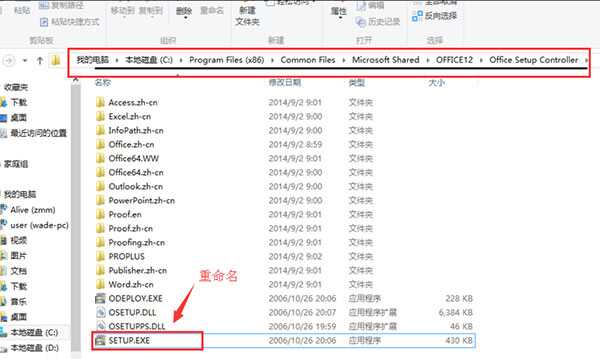 ”打开c盘-》progarm Files(x86)-》common Files-》microsoft shared-》office12-》office setup controller-》将setup.exe名字改成别的,比如SET重命名.exe