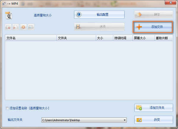 2、这里以MP4视频格式为例子,点击MP4,进入设置页面,点击添加文件,选择要转换的视频,或者直接将视频拖入到窗口中