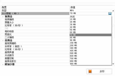 将视频的屏幕大小调制比原版视频要低,将音量控制选项中100%调整到50%,更直接的方法就是直接将大小限制(MB)中调制你想要的视频大小。