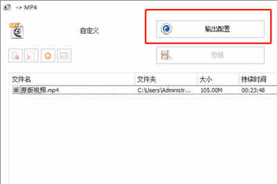 3、之后点击上方的输出配置,选择自定义,想要压缩视频大小,而不影响视频的质量的前提下,就要从视频的音量大小,屏幕大小这两个参数来进行调整。