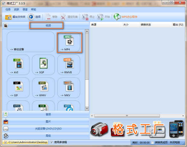 3、格式工厂支持iPhone/iPod/PSP等多媒体指定格式