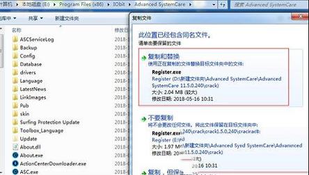 8、将crack文件夹里面的复制到 Advanced SystemCare 安装目录下进行替换
