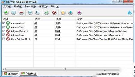 9、这时候需要把安装目录里的替换后的添加到防火墙里,推荐使用防火墙管理软件 Firewall App Blocker