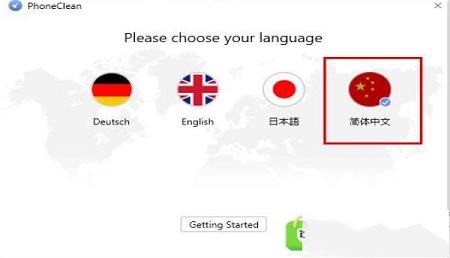 5、选择语言,选择简体中文,点击getting started。