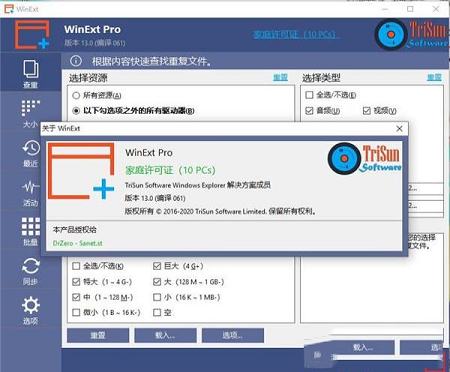 8、双击打开TriSun WinExt Pro破解版软件,点击红色选框下的关于,如下图软件破解完成,可以放心使用软件