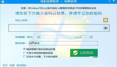 1.从本站下载电脑锁屏解压完成后直接运行“PCLocker.exe”程序;2.设置密码、背景、透明度、提示信息和一些其它选项;
