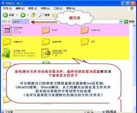 一、虚拟光驱加载ISO后复制或UltraISO/WINRAR解压ISO文件至硬盘一非系统分区的根目录