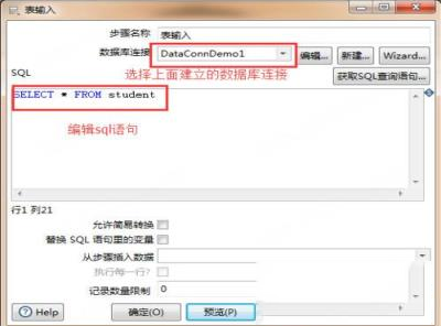 选择数据库连接和编辑sql语句,在这一步可以点击预览,查看自己是否连接正确。