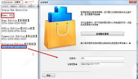 7、接着打开Serial.txt文本夹,选择自己需要的版本密钥进行注册,这里以无限版为例,在框内填入