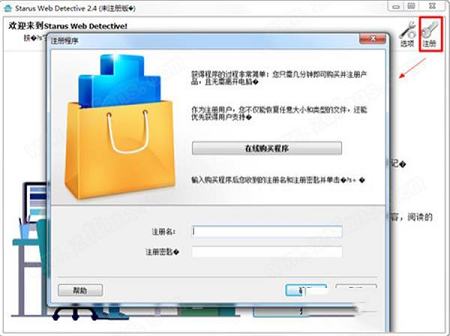 6、在软件界面中,点击右上角注册按钮,弹出注册程序框