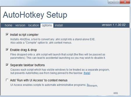 1、设置热键AutoHotkey可令键盘、游戏操纵杆和鼠标的所有潜能都发挥出来。例如,除了典型的Control、Alt和Shift键之外,你还可以定义Win键(徽标键)和Capslock键作为调节键。而实际上你还可以设置任意的键盘按键或鼠标按键作为调节键。详细内容请看高级热键部分。