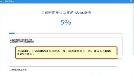 第四步:只需要等待执行完成即可,制作快慢和您的U盘或移动硬盘读写速度有关。