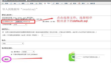 1、使用mysql管理工具创建数据库,然后把根目录下的default.sql数据库导入: