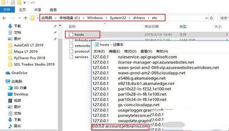 6、安装完成后将0.0.0.0 account.jetbrains.com放入您的hosts文件中并保存,hosts目录c:\windows\system32\drivers\etc