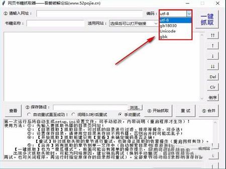 1、支持很多小说平台的小说抓取。2、支持多种文字编码方式,避免文字乱码。