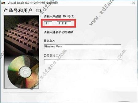 3.安装到这一步的时候,会要求用户产品的ID号,输入111-111111就可以了。