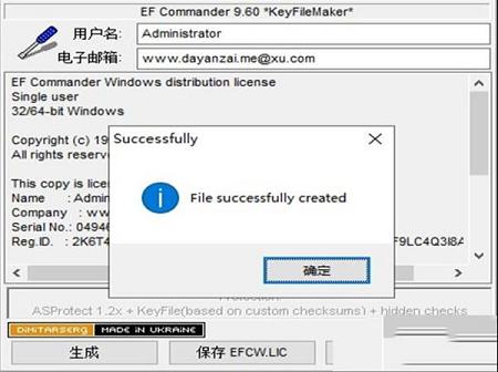 3、运行crack文件夹中的【KeyMaker.exe】,先点击生成再点击保存EFCW.LIC