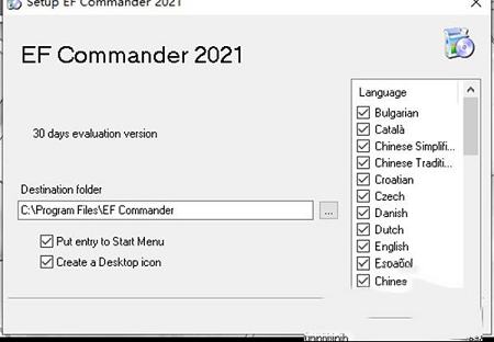 1、点击运行【EF_Commander_2021_64.exe】开始安装原程序,点击设置路径,点击OK即可开始安装