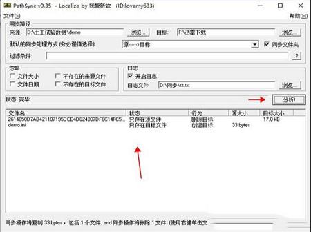 4、点击分析可以看到同步操作需要复制文件的多少。